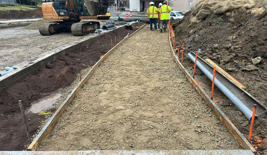 The 60% design was completed in June 2019, but the previous concept was put on hold while the County investigated an alternative design due to questions from the community and an adjacent property owner. The project team worked with the adjacent property owner on a new street cross-section and curb alignment that works with the County’s vision and redevelopment aspirations.