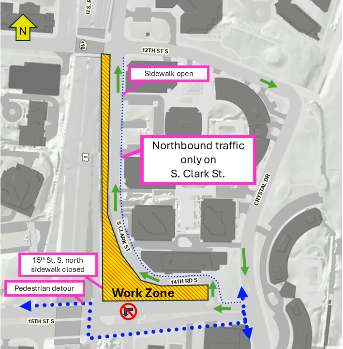 •Bicycle safety along 15th St S, in both directions, and at various points throughout the intersection with South Clark/Bell Street South (between Crystal Drive and Route 1/Richmond Highway)