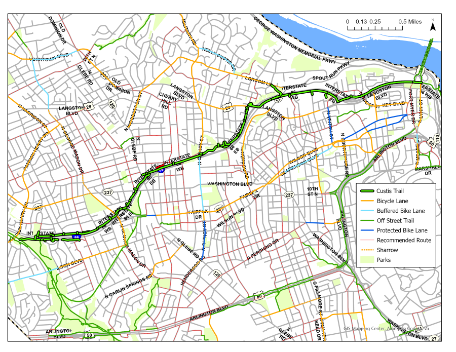 - The Metropolitan Washington Council of Government’s 2022 Bicycle and Pedestrian Plan for the National Capital Region outlines Custis Trail renovations as part of its 2045 Network Projects List.